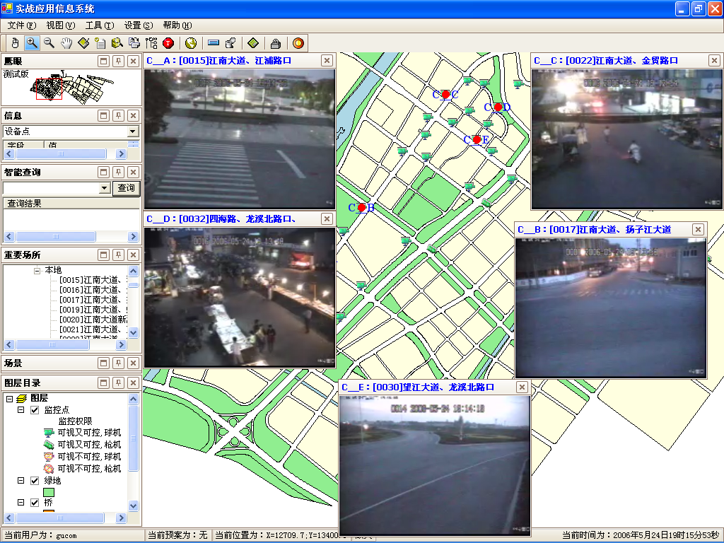 5、與上海三盾智能系統(tǒng)有限公司合作開發(fā)常熟社會面治安監(jiān)控系統(tǒng),該系統(tǒng)是基于C\S結(jié)構(gòu)針對公安應(yīng)用的實戰(zhàn)平臺,采用CSME作為底層GIS平臺,該系統(tǒng)已在常熟市局以及各個派出所24*7穩(wěn)定運(yùn)行3年以上。