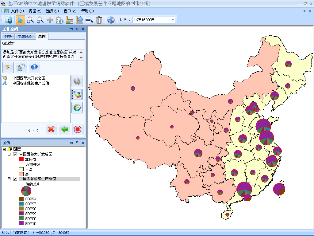 軟件根據(jù)教學(xué)大綱提供大量的預(yù)先制作的教學(xué)案例,教師教學(xué)過程中通過案例向?qū)Э梢钥焖偌虞d對(duì)應(yīng)地圖數(shù)據(jù)以及完成空間分析和專題制圖等操作,有一定計(jì)算機(jī)基礎(chǔ)的教師還可靈活地改變案例中默認(rèn)的專題地圖設(shè)置以及空間分析的參數(shù)設(shè)置,以此通過簡(jiǎn)便的GIS操作方式,利用專題地圖豐富多樣的表現(xiàn)形式和GIS強(qiáng)大的空間分析能力,輔助教師的地理教學(xué)。