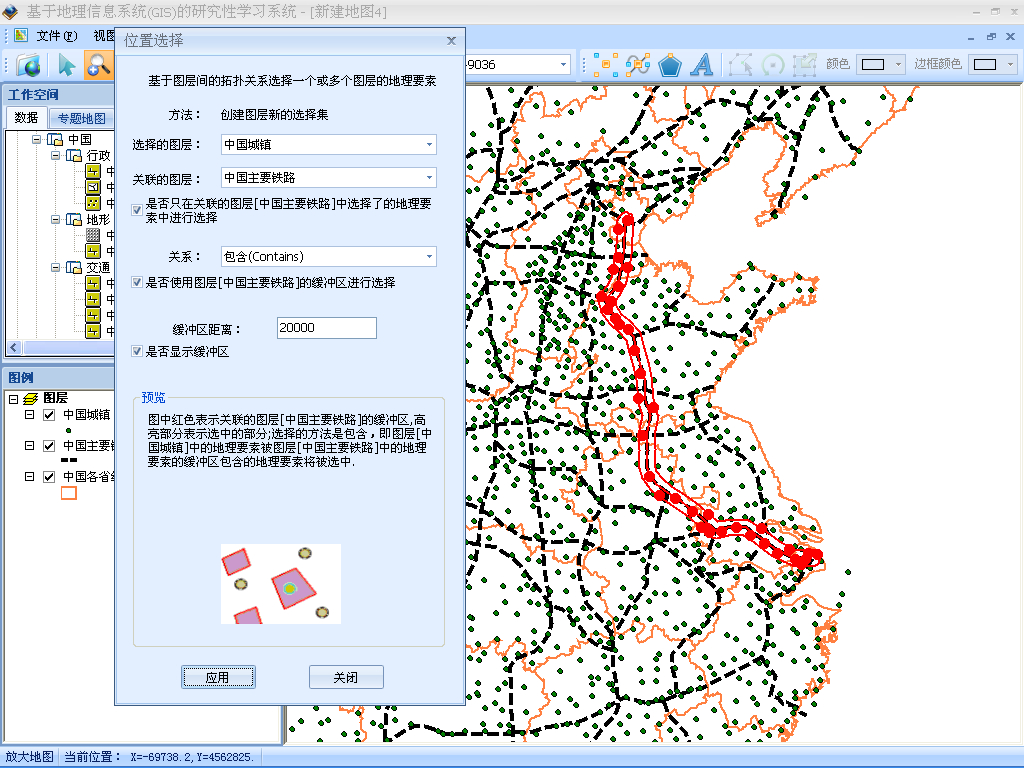 該軟件附帶大量的地理底圖、地形圖和專題圖,滿足地理教師在進(jìn)行地圖知識(shí)、中國(guó)地理、世界地理和高中地理課件整合時(shí)的地圖需求。教師可以借助專題地圖豐富多樣的表現(xiàn)形式以及簡(jiǎn)便的GIS操作方式,實(shí)現(xiàn)地理信息數(shù)據(jù)的查詢、統(tǒng)計(jì)分析和結(jié)果的直觀顯示,該軟件還包括了一些高級(jí)的GIS空間查詢、空間分析功能,教師可利用其教授一些其他教學(xué)方法無(wú)法呈現(xiàn)的特定知識(shí)點(diǎn),如通過緩沖區(qū)分析表達(dá)某一地理要素的屬性影響范圍,包括污染源的有害范圍、集水區(qū)范圍、經(jīng)濟(jì)輻射區(qū)域等。